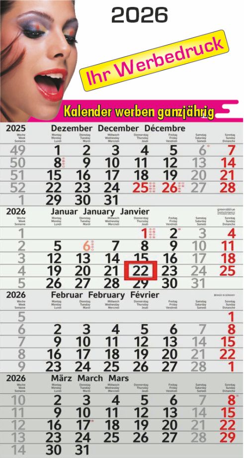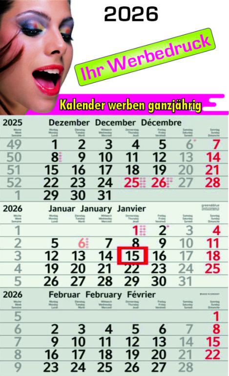Praktischer 3-Monatskalender als Einblattvariante | 25 Stück | nur 123,75 € |