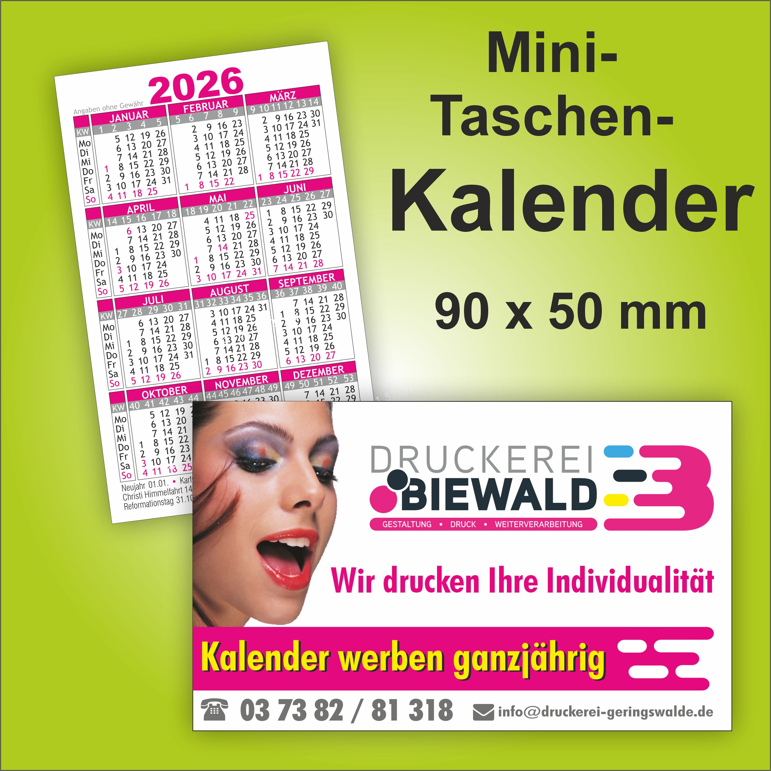 Mini- / Taschenkalender im Scheckkartenformat 90 x 50mm | 1000 Stück | nur 75,90 € |