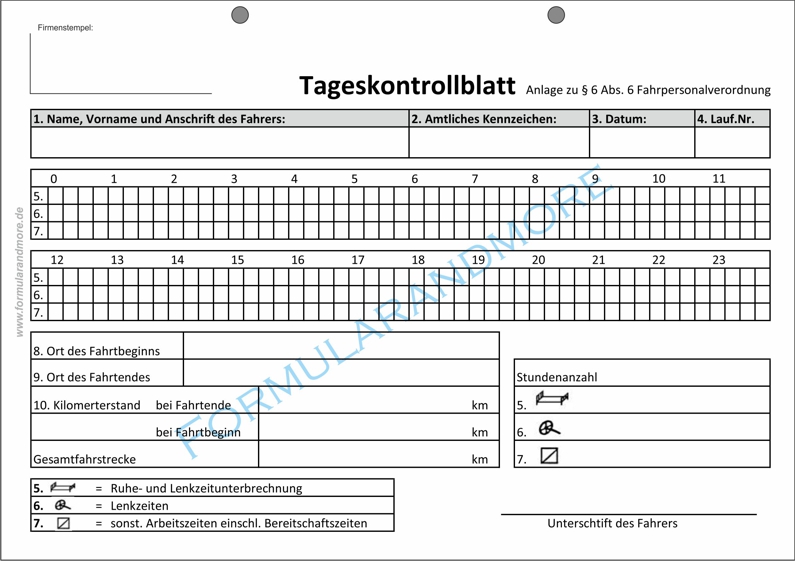 - Formular zur Aufzeichnung gemäß §1 Abs.6 Fahrtpersonalverordnung für Fahrzeige von 2,8t bis 3,5t