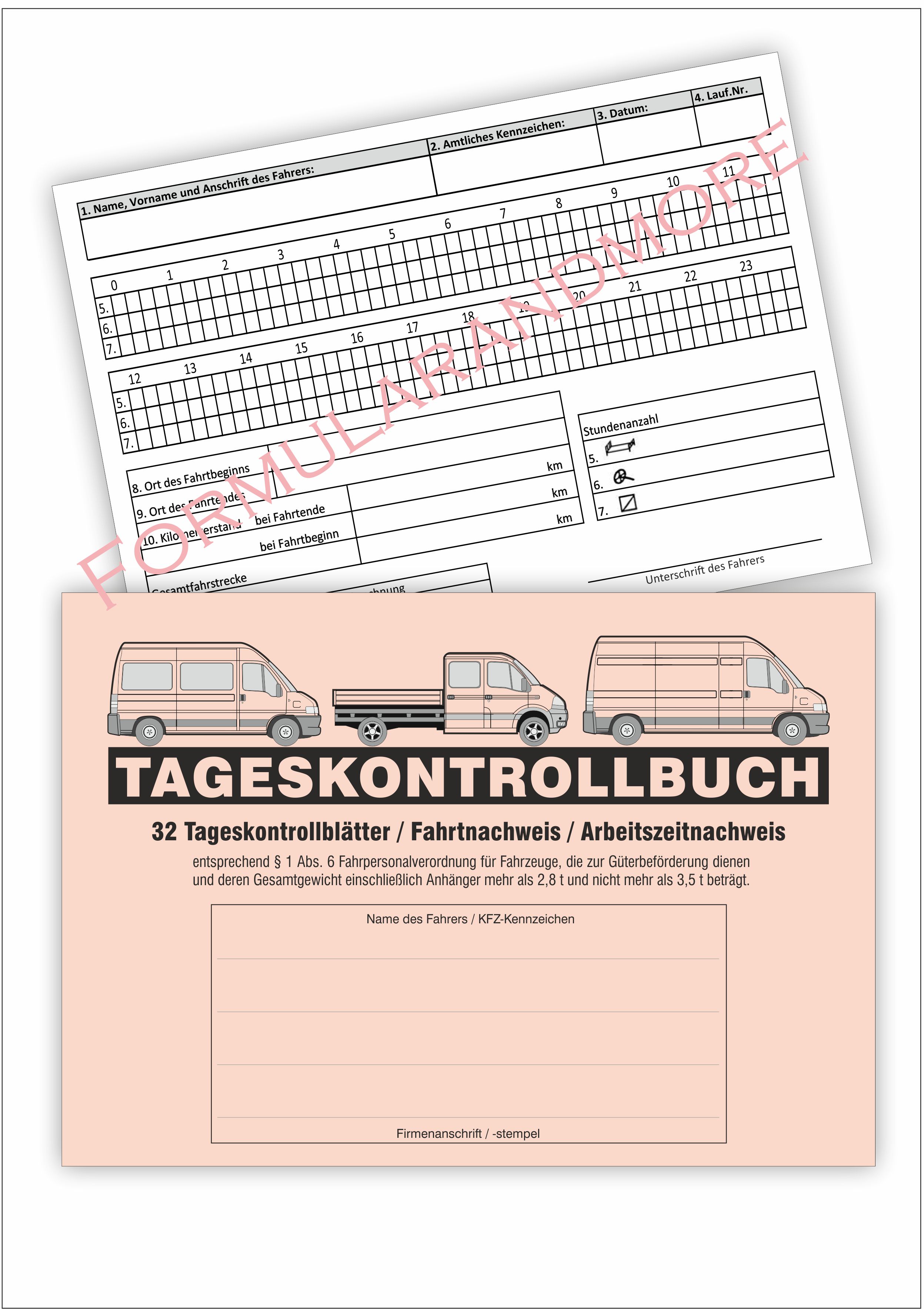Fahrtnachweis gemäß §1 Abs. 6 Fahrtpersonalverordnung für Fahrzeuge von 2,8t bis 3.5t | 3 Stück | nur 11,99 € |
