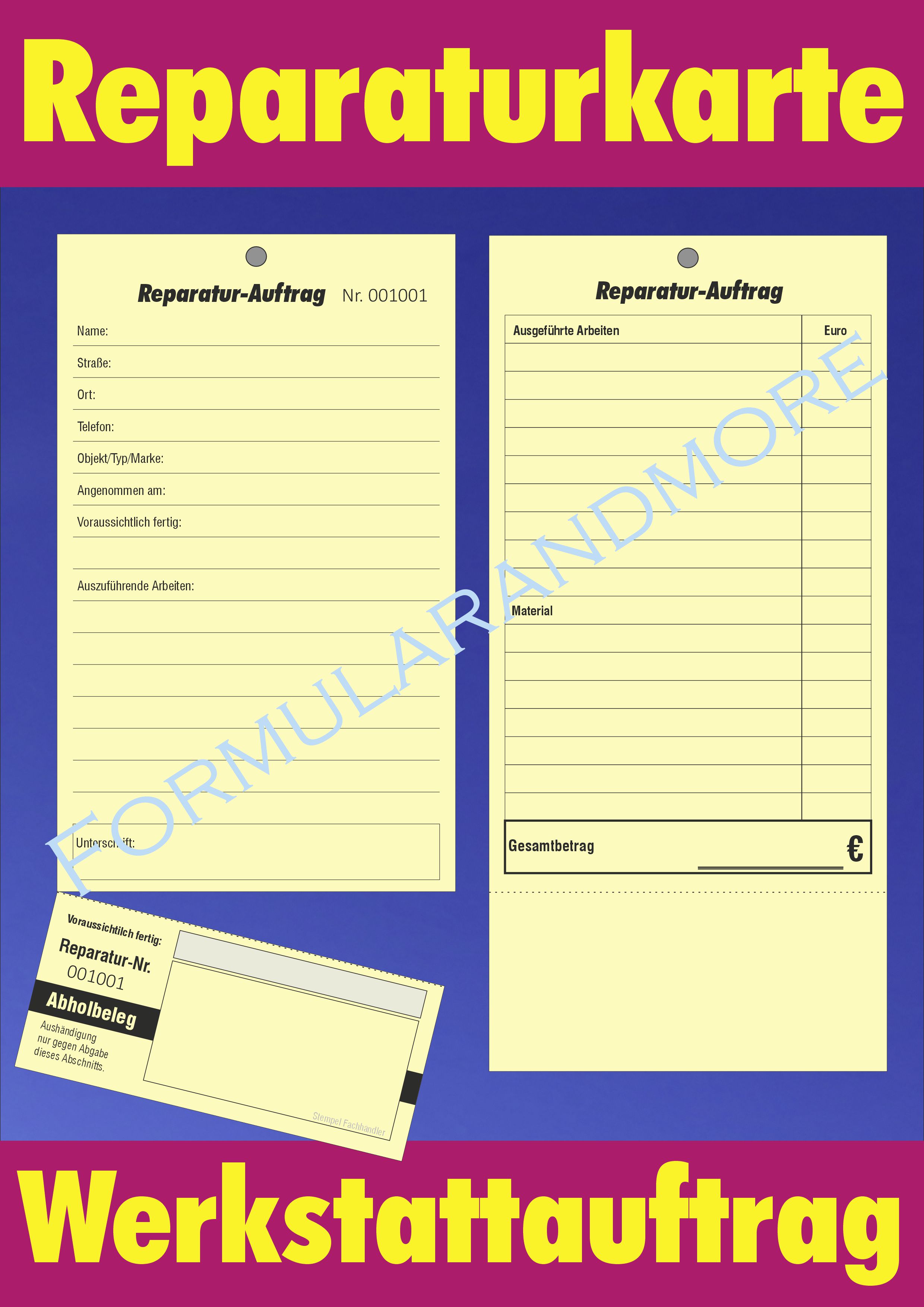 Werkstattauftrag - Karte/ Reparaturauftrag DIN A4