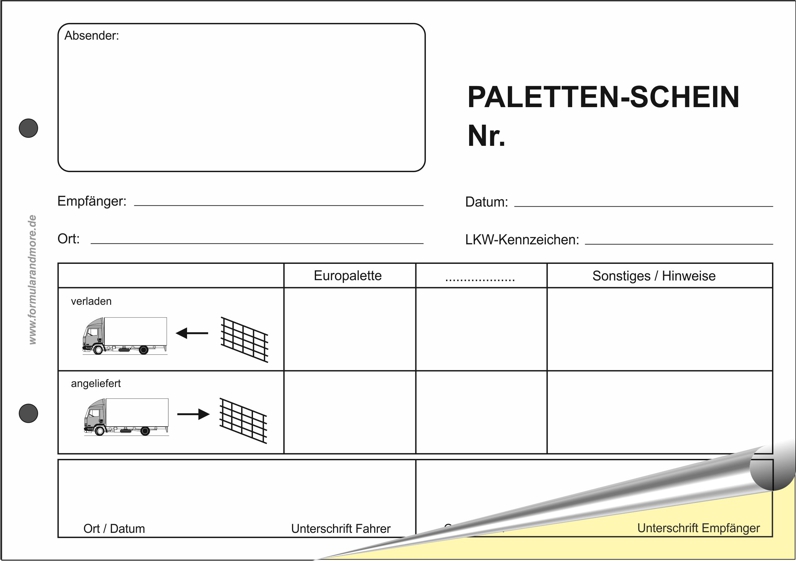 - Handliches Palettenschein-Formular für das Transportgewerbe